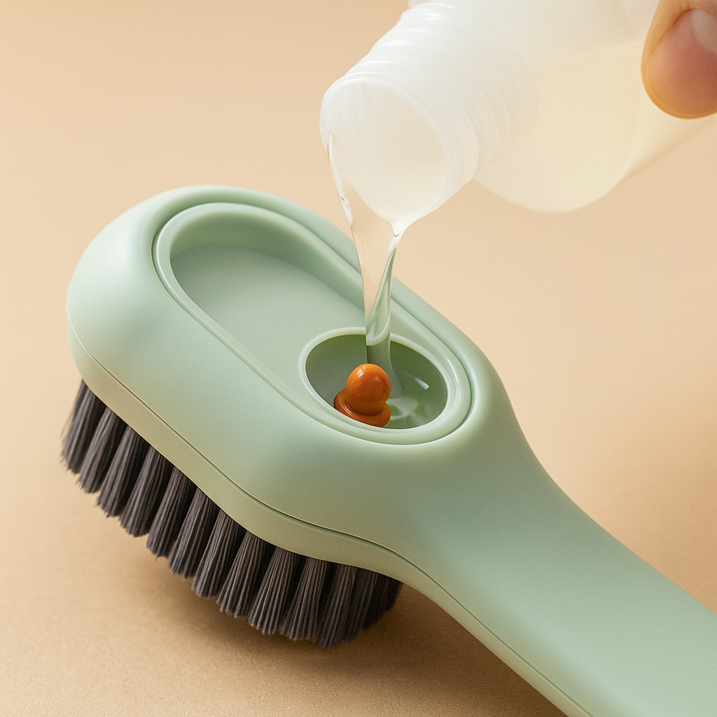 Das integrierte, automatische Flüssigkeitssystem macht den FreshShoe besonders praktisch. Einfach drücken und die ideale Menge Reinigungsmittel wird direkt abgegeben – ganz ohne Tropfen oder Verschütten. So wird selbst eine schnelle Reinigung im Alltag effizient und stressfrei.