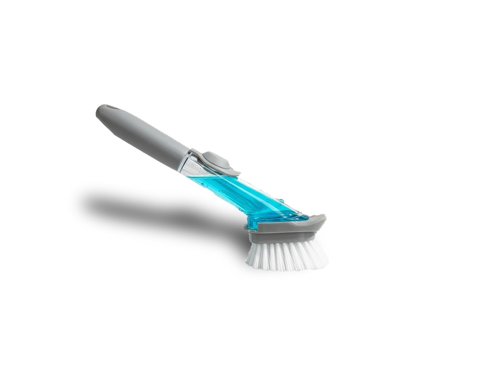 Mit SmartBrush wird Spülen so einfach wie nie zuvor. Die clevere 2-in-1-Konstruktion kombiniert eine hochwertige Spülbürste mit integriertem Spülmitteltank – für müheloses Reinigen ohne ständiges Nachgreifen zur Flasche. Einfach auf den grauen Knopf drücken, und das Spülmittel verteilt sich gleichmäßig dort, wo du es brauchst.